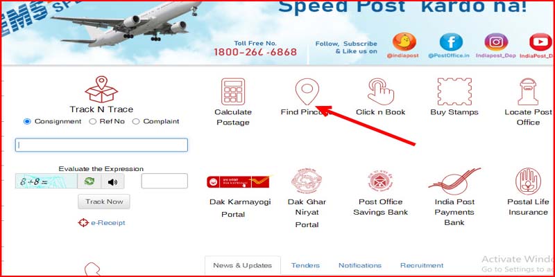 आपको दिए गए विकल्प में से find pincode के ऑप्शन पर क्लिक करना है।